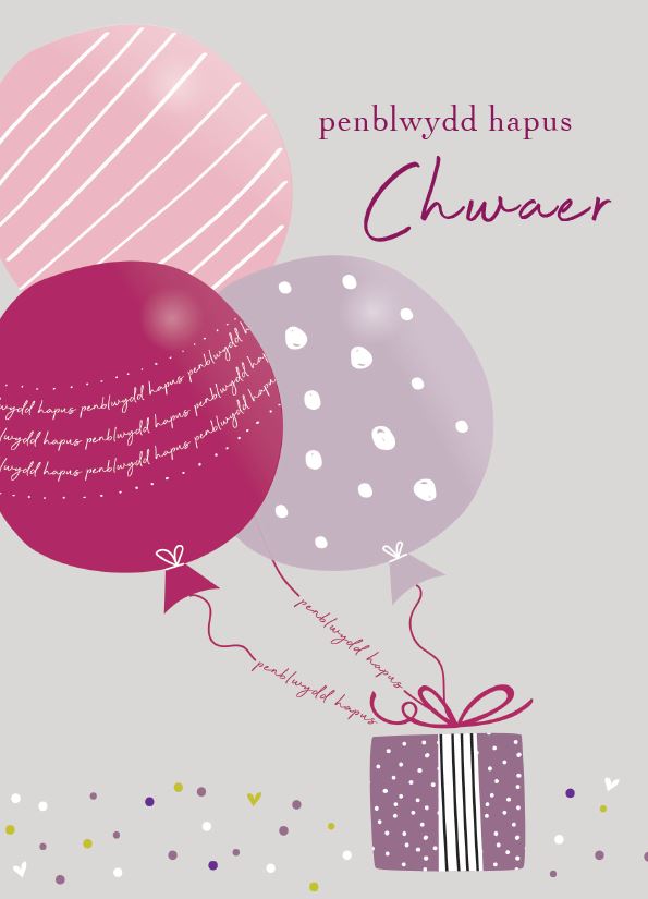 Tu mewn / Inside: Gyda phob dymuniad da am benblwydd hapus (Translates as: With all my/our best wishes for a happy birthday)