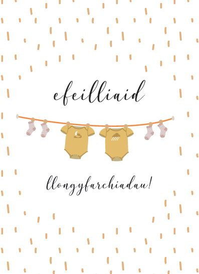 'efeilliaid - llongyfarchiadau' translates as 'twins - congratulations'